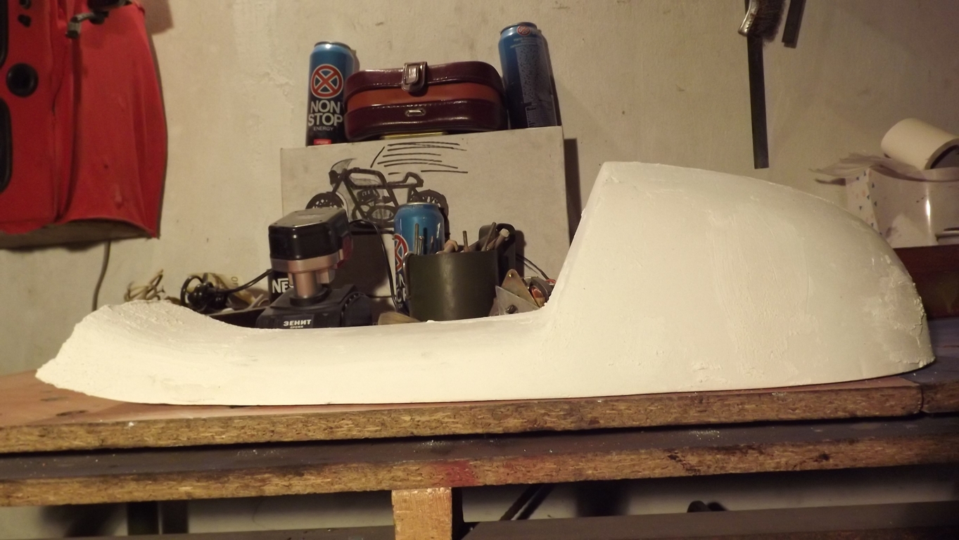 В гаражі знайшов пінопласт, твердючий падло, навіть з болгаркою треба було помучитись, з нього і зробив модель хвоста.