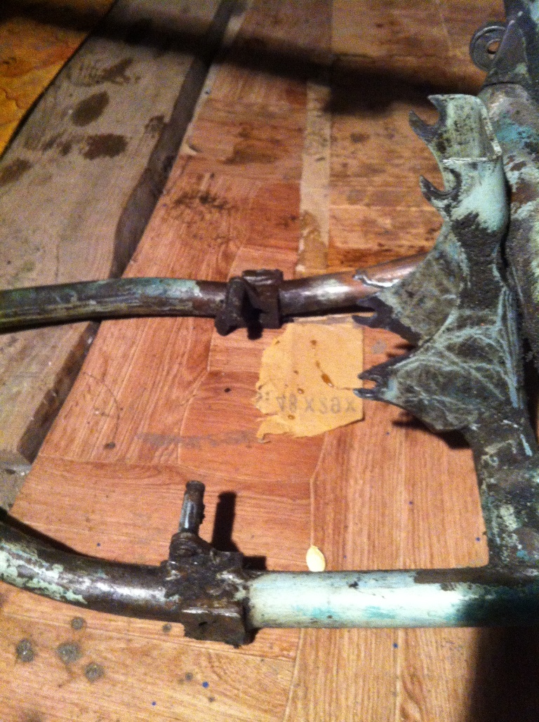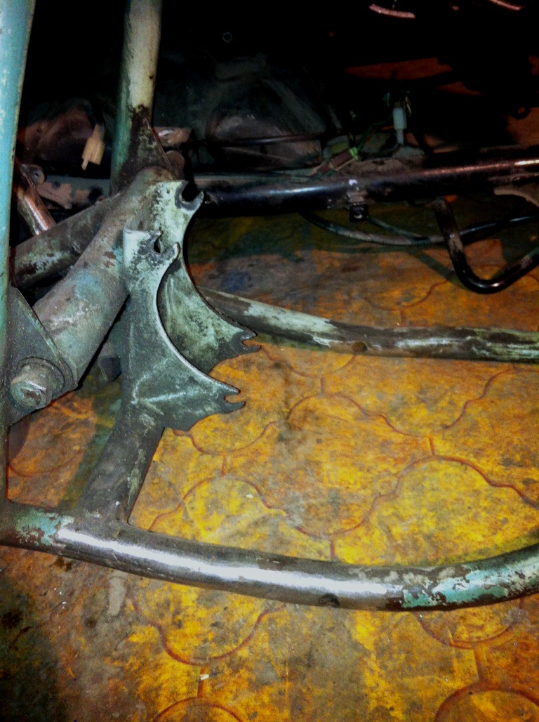 Посмотри как было (труба с пластинами по бокам) и как стало (труба со сквозным отверстием). Очень слабое место в раме.