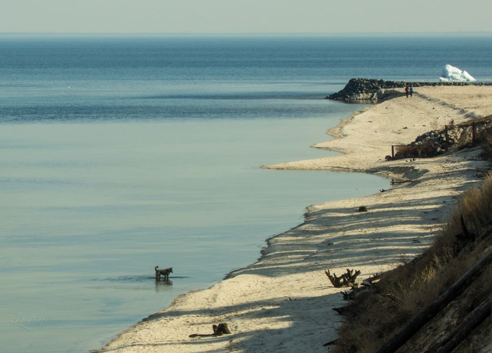Можливо айсберг, їх там було 2. Другий там трохи далі, походження не уточнювали. Може там багатий хазяїн маєтку всю зиму складував сніжок зі своєї фазенди )). На озерах Пущі ще лід лежить, але йому там не довго залишилось.