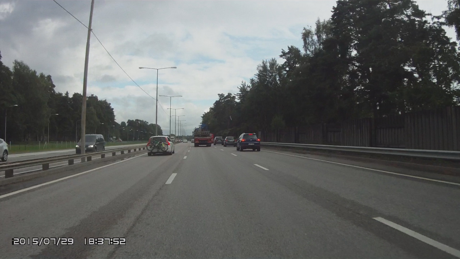 Поскольку мы уже в Латвии то забудем о дороге без луж. Как назло нафигатор нас начал водить огородами и после Риги мы поехали в Екабпилс совсем другой дорогой – она постоянно петляла, куча населенных пунктов и к тому же была плохого качества. По пятам нас догонял дождевой фронт, по бокам нас толкал порывчатый ветер.