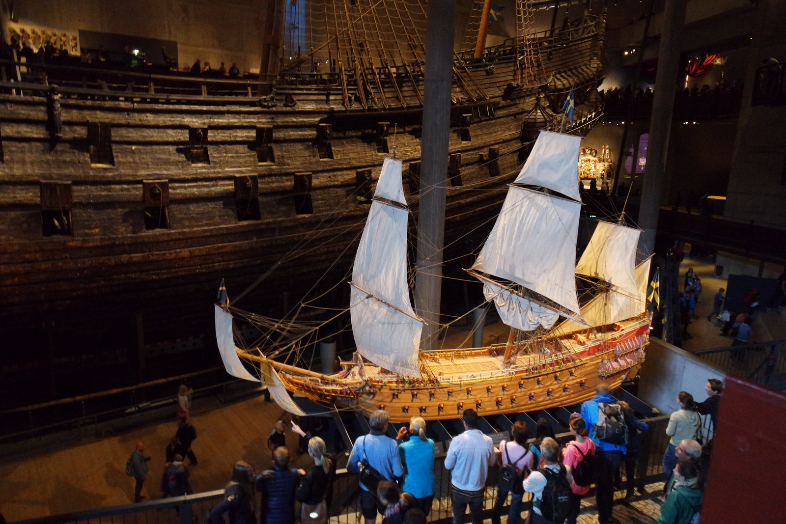 Музей Ваза – это музей одного экспоната. В музее представлен почти полностью сохранившийся 64-пушечный корабль XVII века «Ваза», который затонул в 1628 году во время своего первого выхода в море. Собственно вот и он.