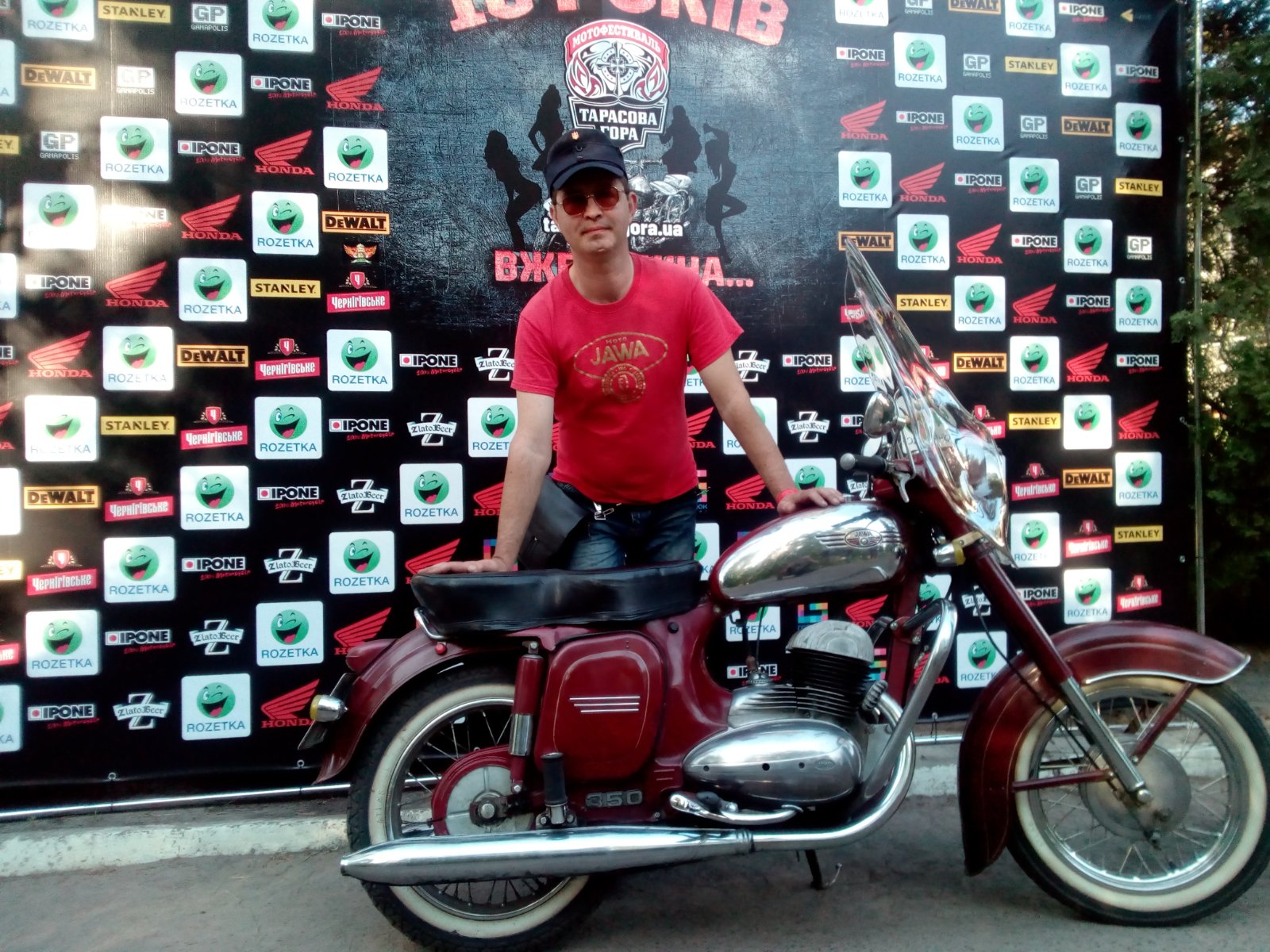 над сценой 5этажный корпус,возле него асфальтная площадка и наш лагерь Ява-олд,моя Ява с ветровиком парус