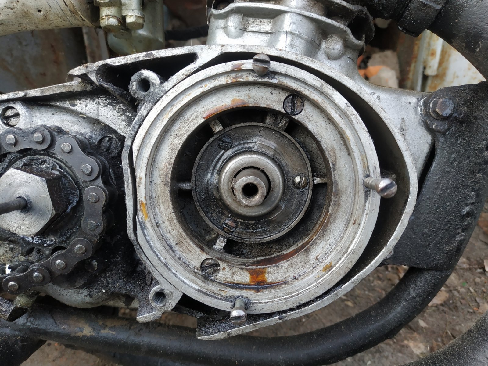 Минск м1м он же к55 достался мне такой вот кастом моторчик 3 передачи стояло якорь от ижа с кулачком генератор через переходную пластину и аккумулятор от авто на багажнике. Только так давало весьма не плохую искру. Как тебе такое Алон Маск!?