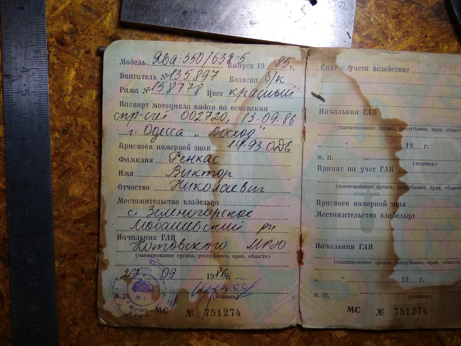 Так в том-то и дело, что мот чистый. Не может ворованная рама, не перебитая, с вин-кодовым шильдиком, и техпаспортом первого владельца, 35 лет колесить и не быть задержанной. Да и хозяев у неё не было много, да и скорее всего жила она тихой сельской жизнью. Кстати в селе я её и нашёл.