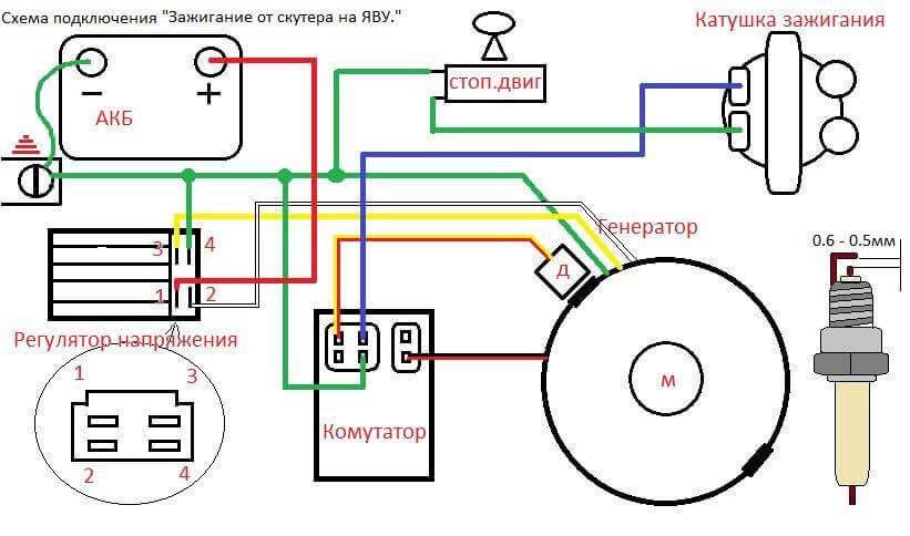 Буду ставить его на минск. На фото видно что катушки зажигания отдельно от катушек освещения. С катушек освещения пойдут два провода на реле регулятор, после реле один на акум, другой на массу, получается это уже будет постоянка. А с катушек зажигания получается тоже два провода один на клемму питания коммута другой получается "масса" мне ее кидать на общую или сделать отдельно? Т.е. только к комуту подвести.USS писав: 22 квітня 2020, 18:20Спочатку поясни, будьласка, куди маєш намір застосувати генератор з мінська та китайський комутатор? На мінск?Будет ли рабочая такая схема?
