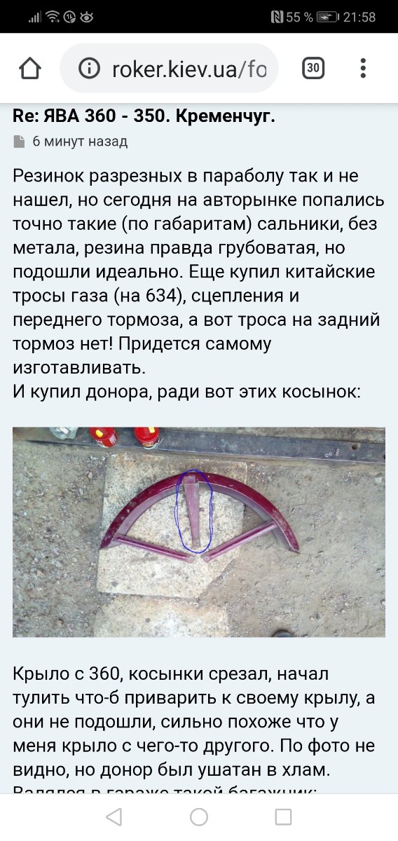 Резинок разрезных в параболу так и не нашел, но сегодня на авторынке попались точно такие (по габаритам) сальники, без метала, резина правда грубоватая, но подошли идеально. Еще купил китайские тросы газа (на 634), сцепления и переднего тормоза, а вот троса на задний тормоз нет! Придется самому изготавливать.