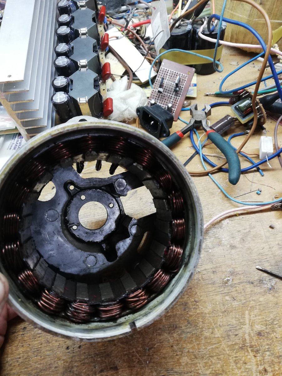Приобретен 12 В генератор от Иж-5 и якорь от генератора Минск. Зазор якорь-статор 1,5 мм на сторону (в китайских CDI по 1мм на сторону, но магнит субъективно слабее)
