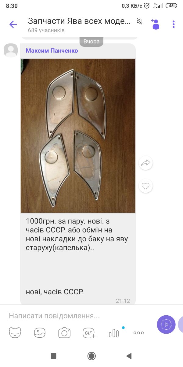 В одній з груп в вайбері продаються дві пари нових хром накладок на бак. Ніби по 1000 за пару
