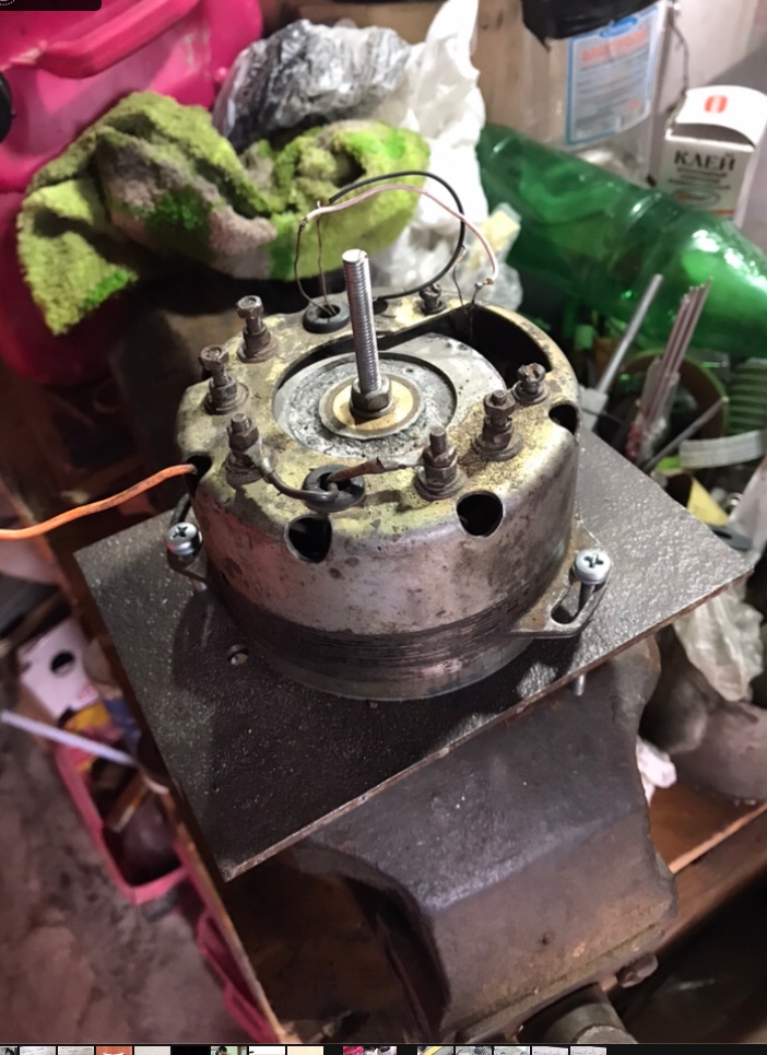 Генератор от Восхода. Все 8 чулков включены последовательно. На оборотах дрели с нагрузкой в виде лампы 220В 100 Вт на выходе получил 48 В переменки.