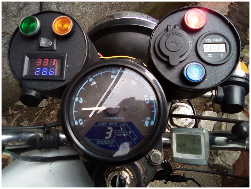 Запустил и проверил приборку, вроде все работает. Предварительно настроил - пока удовлетворился тем, что тахометр показывает на слух разумные значения, а показания спидометра при вращении колеса примерно совпадают с показаниями велокомпа. Окончательно уже на ходу настрою.
