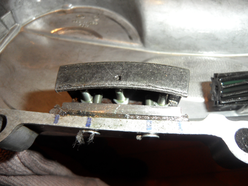 Растянулась моторная цепь и чертит по картеру. Прошла от силы 500 км. Читал в книжке что сверлят дырки в крышке и ставят кусок вазовского башмака натяжителя. Скиньте фотки и размеры если есть, а то я не пойму по книжному чертежу. у кого стоит + и - натяжителя?