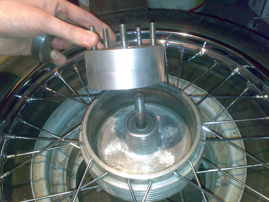 Крепление непосредственно диска заняло больше всего времени и сил. Остались несколько фоток процесса, внешне все довольно понятно, но на деле довольно долго подгонялось одно под другое до требуемого результата.
