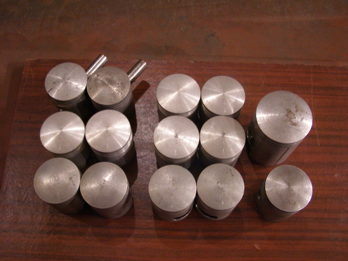 to Maksim: Эти поршни самые первые, что появились из новоделов. Нужно снимать немного металла в районе бобышек. Они всегда прихватывали именно в этих местах. И при расточке вместо стандартных 4-5 стоток, надо делать 7-8... По крайней мере мере люди катались с этими поршнями много лет без проблем. Я себе не оригинал ни когда не ставил. Пальцы есть точно. Целая коробка. Пальцы не сырые, цементация СССР-овская. Любые размеры, плюс сотка, минус сотка. плюс две...и т.д. Это подогнанные по размеру (длине) пальцы от лодочного мотора Нептун. Там тоже был палец на 16, но чуть длиннее. С военной консервации. Я их когда то давно каждый перебирал микрометром. Так как и тогда было дохрена брака и несоответствия. Выбраковал больше половины ящика. Кольца 4 ремонт посмотрю.