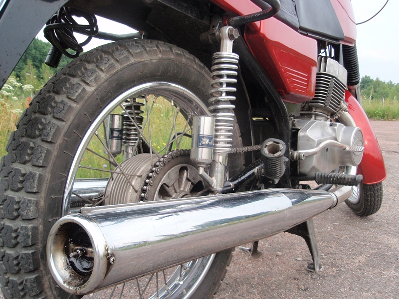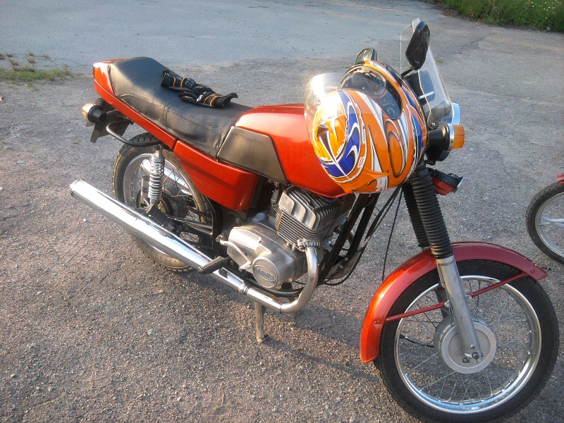 Двиг на даный момент приобретен другой , так как в родном рассыпался игольчатый подшипник коробки и это привело к повреждению посадочного места. Накатал , после капиталки и двойной замены поршневой, 25000км , максимальная скорость 135км\час (опережение 2,8 , 4Б ремонт , 95 бенз , масло ессо 2Т) . Была куплена за 300$ в убогом состоянии 3,5года назад . Было заменено : обода , покришки , задняя панель , руль , полностю все подшипники мотоцикла , заменены втулки маятника , перебрана вилка , заменена проводка , куплены новые глушаки (на китай не похожи , говорят что польша 850грн) , в коробку установлен вал на "13", и многое другое. После чего была снята полностю вся краска с мотоцикла и ржавчина