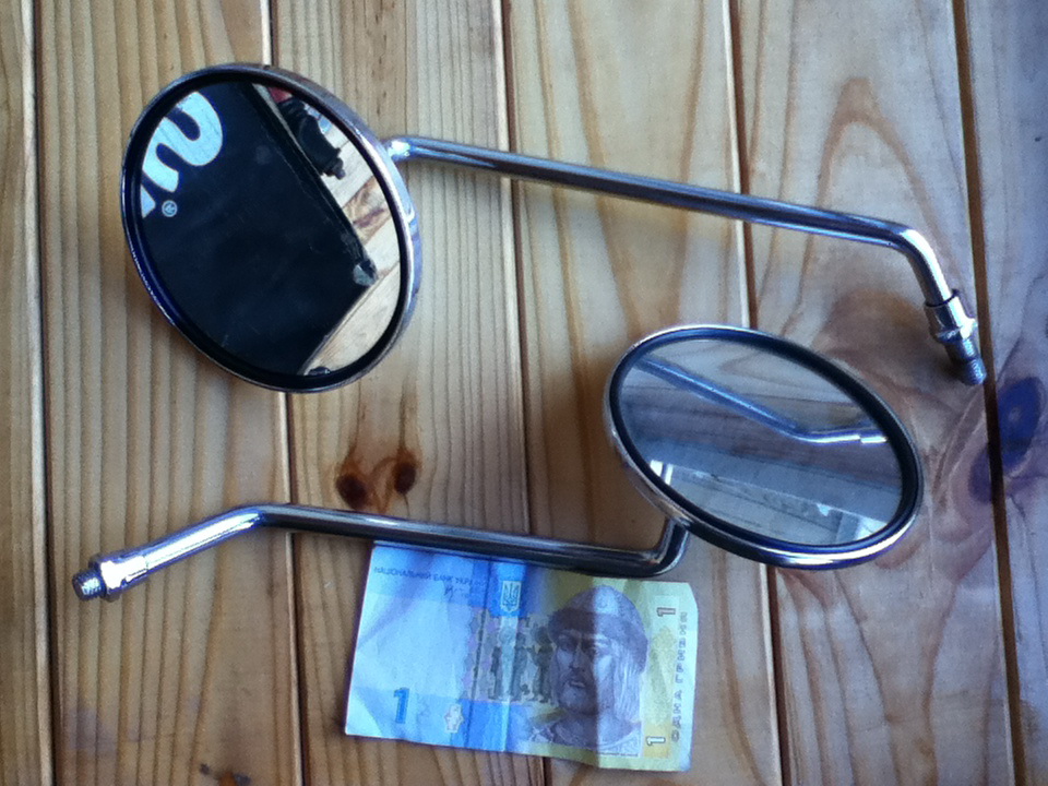 Віддаю за пляшку живчика дзеркала. Купував собі минулого року, але вони мені не підійшли. Виглядають так як нафото (фоткав 20.04.2012). На задній кришці є потертості (збільшіть фото щоб побачити).
