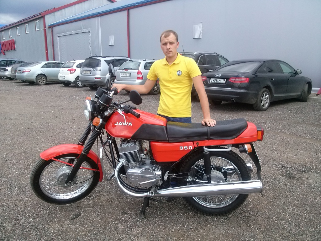 Итог всему покупка явы 638-1-03. В начале августа поздним вечером звонит мне Олег и говорит на Авито с Тамбовской области выставлена на продажу не плохая ява по не заоблачной цене, посмотрев фото созвонился с хозяином попросил снять объявление, решил вопрос по транспортировке и ждал уже свою "лялю", опять же вечером мотоцикл был доставлен ко мне в подмосковье. Выгружали вместе с хозяином проехав немного поставил на кратковременное хранение.
