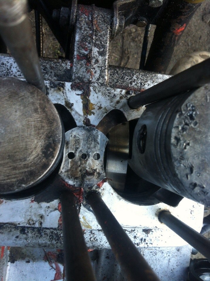 Правый поршень - иголка упавшая в кривошип. Сам один раз так попал :)