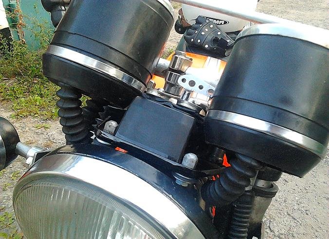 Походу думаю как мне задействовать выключатель двигателя на правой рукоятке. Додумался до... подключения правого сигнала-как раз в стиле рокеров "тех лет" -чтобы не постоянно оба "допплерили" а в режиме "город" вопил бы левый а в режиме "шоссе" - орали бы оба, выдавая ещё и инфразвуковую составляющую...
