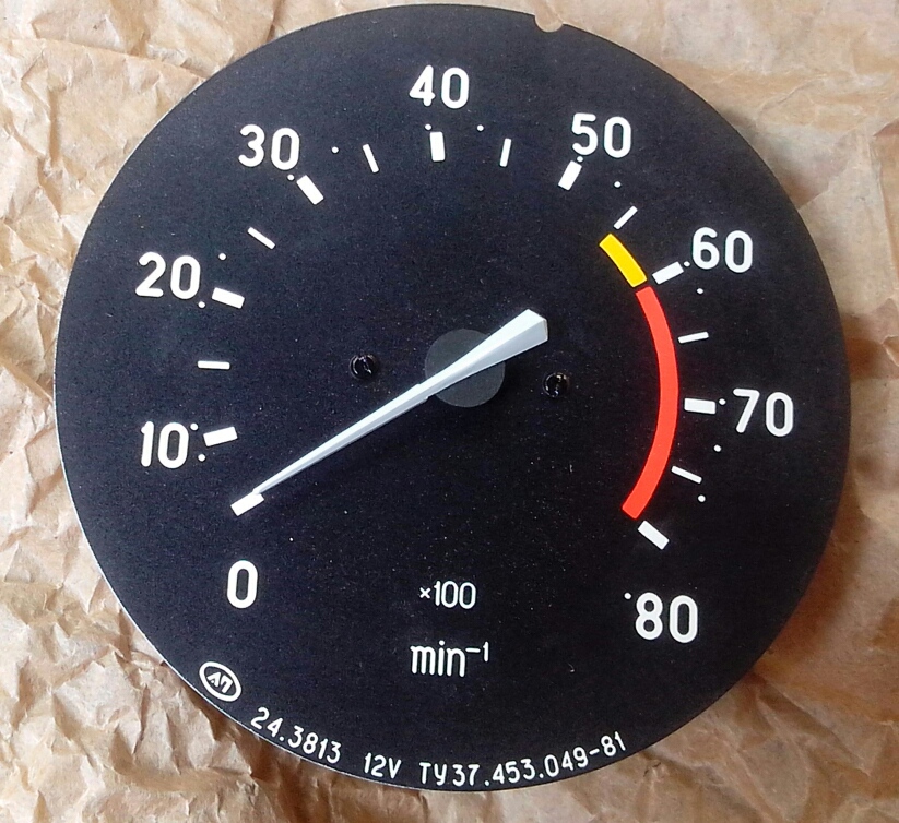 И вот сегодня мне за целых сто грн подогнали немного бракованный (точнее покалеченый) семерочный тах. Увечия на первый взгляд и вовсе не видны, но при установке в панель семерки видно - погнут циферблат. Я подумал, что для меня это вовсе не горе и с привеликим удовольствием забрал сие чудо российского автопрома. :)