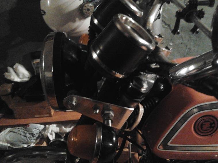 Доброго всем времени суток! В-общем смотрю я на свой Чезет и снова в нём что то не то, на этот раз трос спидометра, идущий "поверх" фары слева и сжатые до предела провода в районе фары побудили меня сначала искать бывшие ранее (безуспешно) а потом и изготовить кронштейны для увеличения выноса фары.Дуралюмин Д16 толщиной 3мм, несколько часов ручного труда и - вот они!
