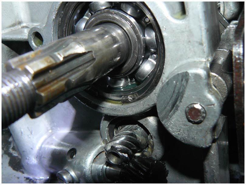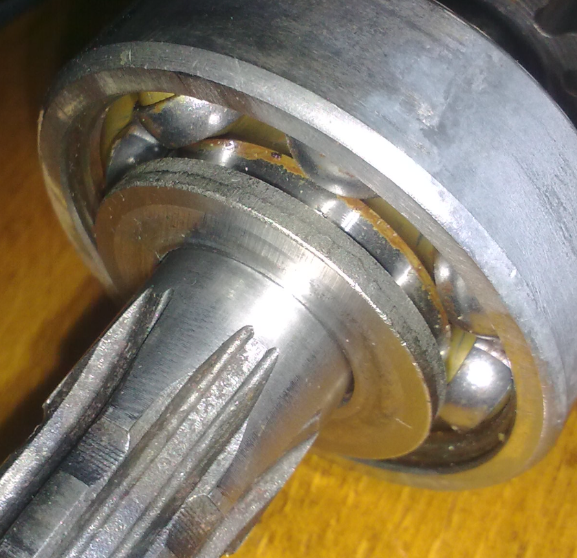 Що з ним? Чуму він якийсь покоцаний? Зверніть увагу, що у картері повно алюмінієвих, а може з ними і металевих ошурків, картер треба мити. І що то за кисіль у підшипнику промвала?