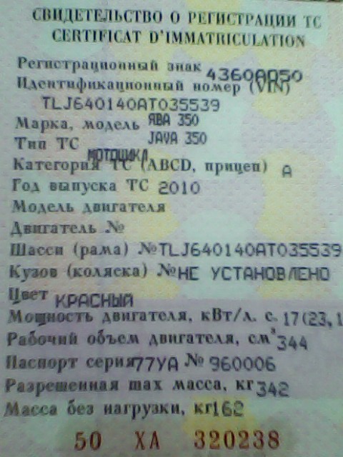 - Мотоцикл: JAWA 350 640 2010г.в. JAWA 350 634-5-1979г.в. Восход 2 1975г.в.