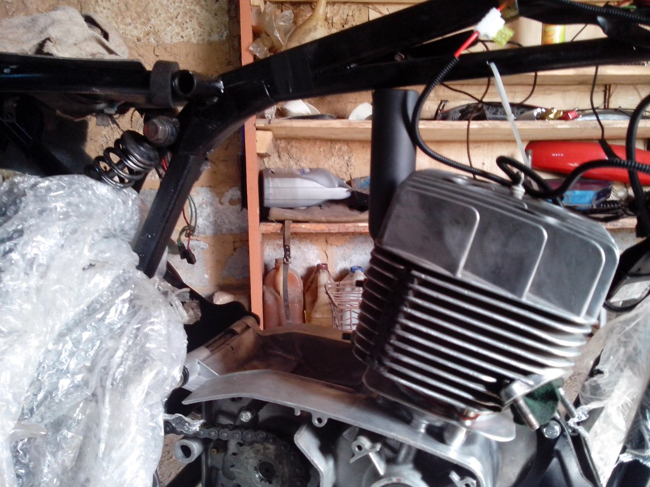 из планов заменить подшипники в колесах и звезде, поставить цепь и защиту, правда придется поморочится так как маятник удлинен на 6см и "гофры" коротковаты, но то все делается по-месту. Так же начать делать переходник под дисковые тормоза