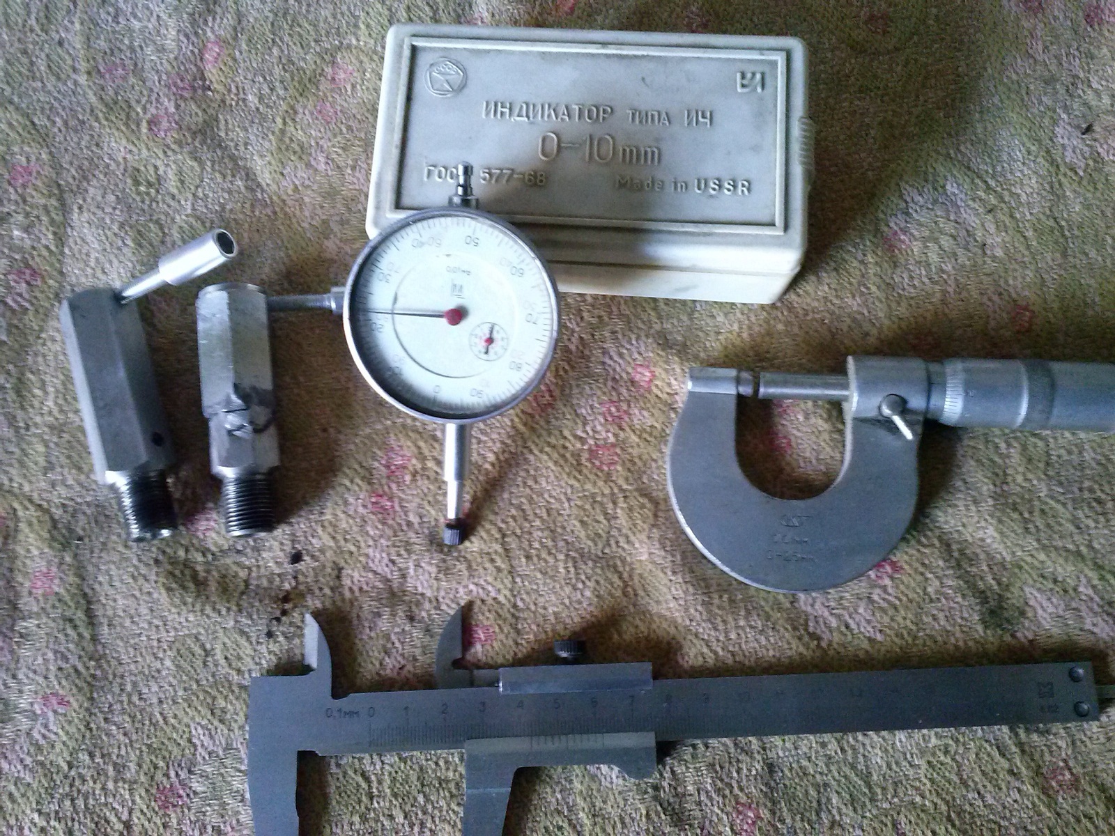 Индикатор часового типа для точной установки угла опережения+2 переходника для удобства, микрометр, штангенциркуль