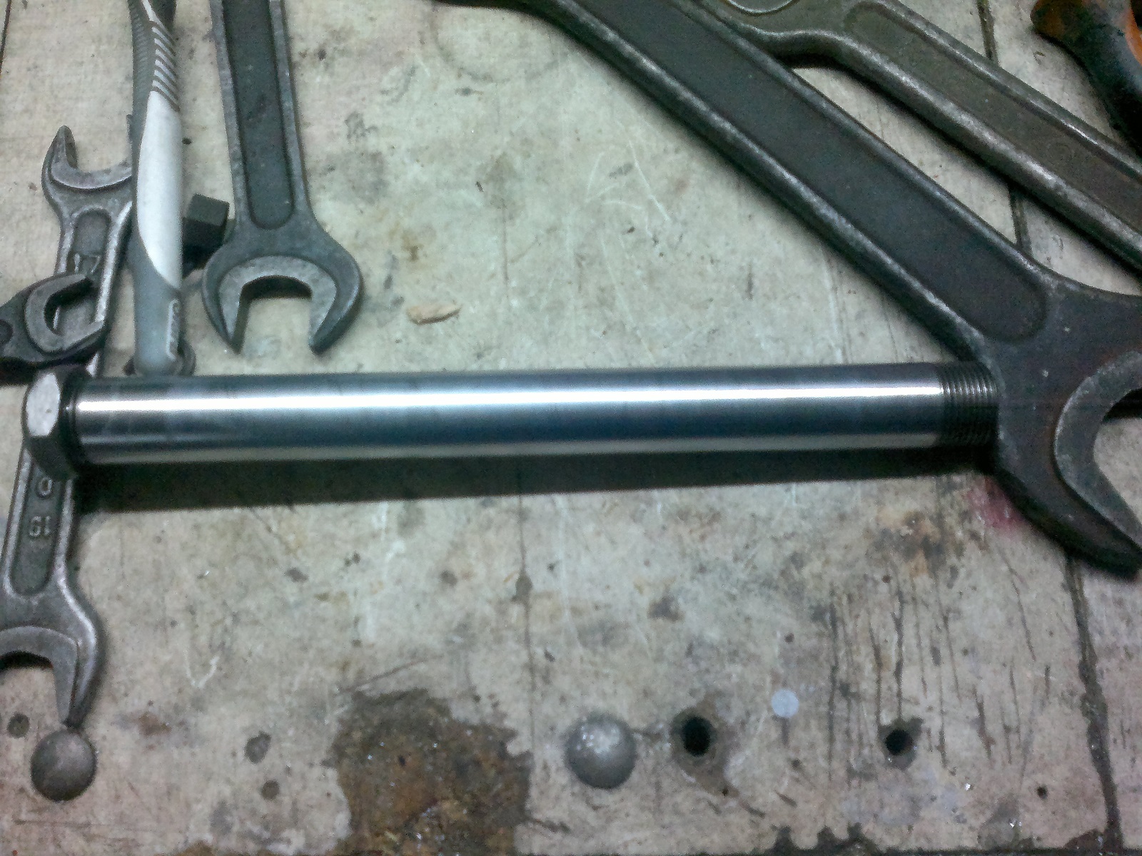 Всем зрасьте!Зазобрал наконец-то маятник(самому было интересно).Вобщем, ось самодел с авто стойки аммортизатора(Спасибо lelikу)Токарь нарезал резьбу,сделал отверстие под тормозной вал...сам же райбером увеличил отверстия в ушах маятника до 28мм,под игольчатый подшипник(NTN),в каждом ухе стоит по два штуки.Между ушами стоит трубка-проставка,на концах сальники с ИЖа(вроде с генератора).Середина изолирована))Между рамой и маятником пришлось ставить дополнительные шайбы,родной маятник шире чезовского...вырезал со старых бронзовых втулок...парочка резиновых колец и готово!Ставил сначала маслёнки...по месту выяснилось,что с правой стороны цепь трёт о маслёнку,да и подбираться смазывать проблематично...пришлось крепить кусок резины между цепью и маятником уже без маслёнок.Переделка работает! :super: Испытывали с женой в "эндуро" условиях,проехали 646 км на новой оси и следов работы нет!Смазка своеобразная...разогреваем Литол до жидкого состояния,набираем в металлический шприц и через родные дырочки в маятнике(сверху ушей) вливаем,пока не полезет с щелей.При разборке смазки ещё было достаточно,поэтому решил смазывать через 1500км-кашу маслом не испортишь!)))Фото с телефона,за качество сорри.