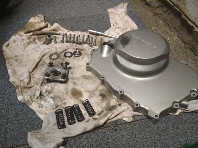 В предыдущем сезоне замечал иногда при резком наборе скорости небольшие пробуксовки сцепления на 3 и 4 передаче, но только кратковременно после отпускания рычага. Пустил газ, снова накручиваешь - уже не буксует. При обгонах и под горки на 5 передаче такого не было. Решил полезть пощупать-померить. Вскрывая правую крышку, заметил что из под болтиков краска с крышки местами отлущивается и болтики откручиваются с характерным щелчком и приличным усилием. Хороший знак, следовательно до меня туда никто не лазил. Раскрутил корзину, измерил диски и пружины - все размеры в пределах допустимого, металлические ведомые диски без выработки и кривизны. Парочка были на вид перегретые. Фрикционы скорее всего "остекленели" и не имеют нужной шероховатости-эластичности. Также заметил, что на корзине есть небольшая выработка от фрикционов, но не сфотографировал. Возможно, это также могло быть причиной пробуксовки. Зачистил торцы напильником до исчезновения следов (как в мануале описано), промыл и собрал. Крышку поставил на герметик, прокладки там нет. Если не поможет, следующей зимой поменяю фрикционы, пробеги у меня не большие - должно хватить.