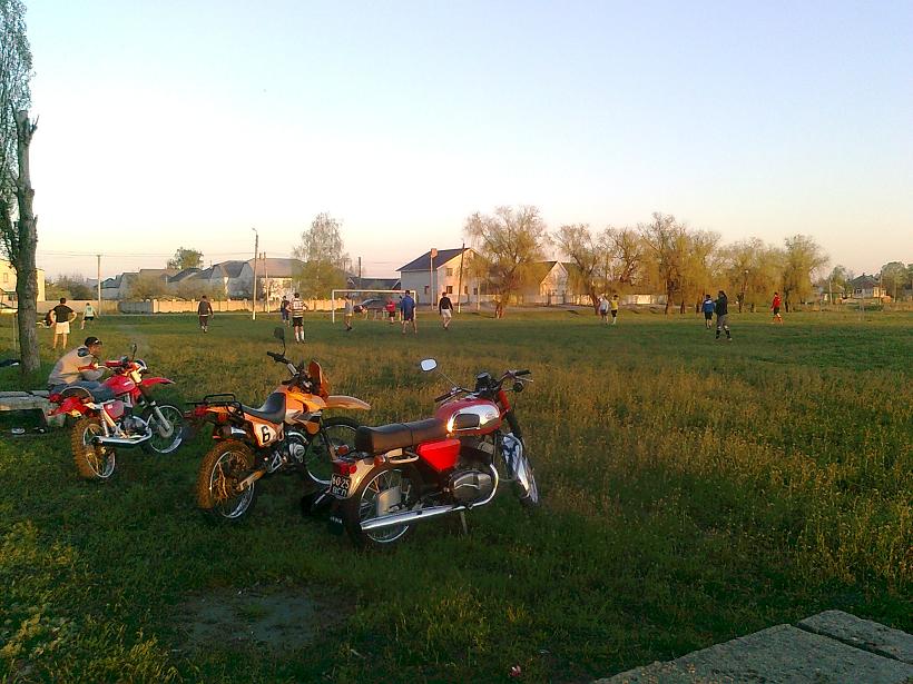 После запуска проехались на футбол. Брату Сане достался макарий, сыну Фёдору, ZS, ну а я , по старой памяти на JAWA ! :D
