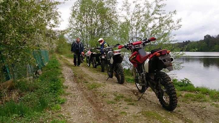 В неділю зранку після дощу виїхали розім"ятися. Катнули вздовж річки Ірпінь, а потім поїхали через ліс та рибгосп за Чайку на місце, де ще не так давно проводились круті змагання ендуристів, хто пам"ятає, під назвою "Лесные горки". За 4 роки після закінчення проведення змагань, там все пішло прахом. Трасса завалена сухими та підгорівшими деревами. Видно, що недавно там все понівечила пожежа. В полі гниють залишки дерев"яних мотоперешкод та сотні розкиданих автопокришок через які вже проросли дерева.