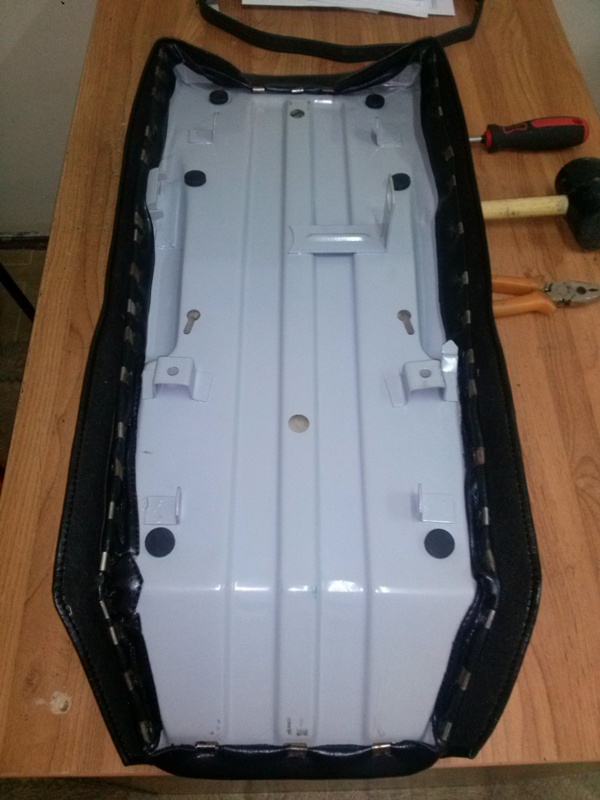 Основание сидения крашено порошковой краской соответственно перед этим было отпескоструено, чехол сидения от Александра Кононенко, единственное ремешок пасажира без крючка зацепа, пришлось заказать с Питера!!!! Судите сами но мне кажется он не в тему. Единственное что можно попробовать переклепать зацепы на Сашкин ремешок.