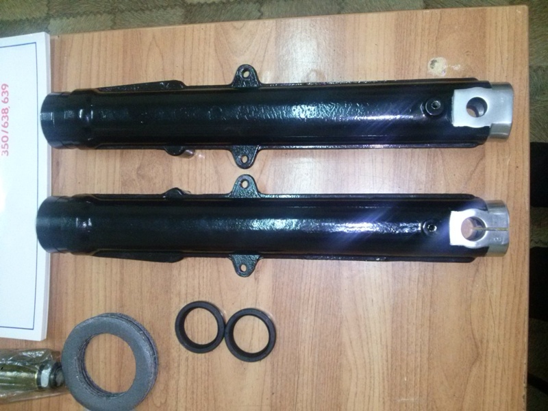 Стаканы вилки красил сам, в принципе получилось не плохо. Почему то сальники которые купил в них оказались прослаблены при совпадующей маркировке, сальники называются гуферо а родные гумоков. Даже старые вставляются с трудом а новые без усилий, придется брать стаканы и на рынке подбирать.