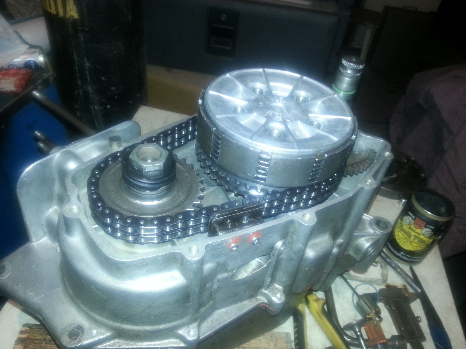 Натяжитель дело хорошее, да вот только он ставится на НОВУЮ цепь. На этом форуме множество раз об этом писалось. Растяжение цепи - это больше износ каждого ролика чем физическое растяжение звеньев. Увеличивается меж осевое расстояние в цепи, и ее ролики ложатся на зуб, а не во впадину между зубьями Такая цепь приводит к очень скорому износу зубьев ведущей звезды и корзины. Вот как я себе сделал: