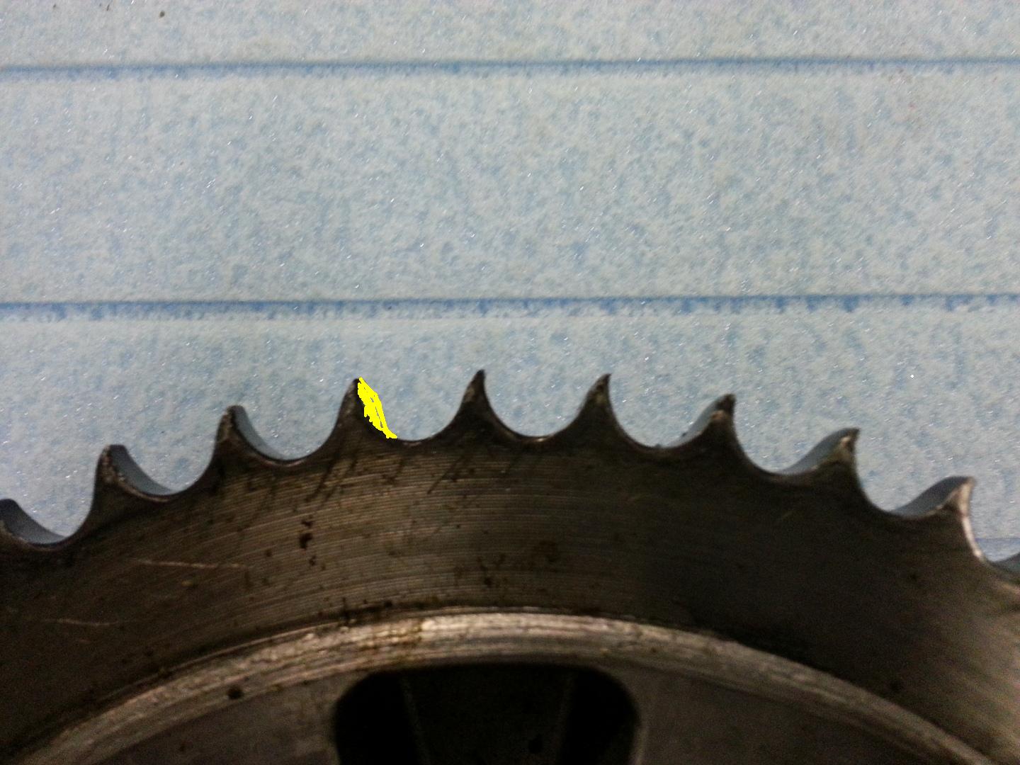 сегодня разобрал задний кожух и извлек на свет божий звездочку. после осмотра обнаружил, что практически все зубья загнуты в одну сторону.