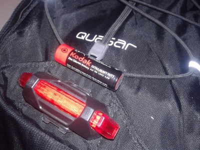Обычные велосипедные мигалки работают от двух ААА, много режимов и хватает фиг знает на сколько - даже не помню, когда я батарейки в своей веломигалке менял