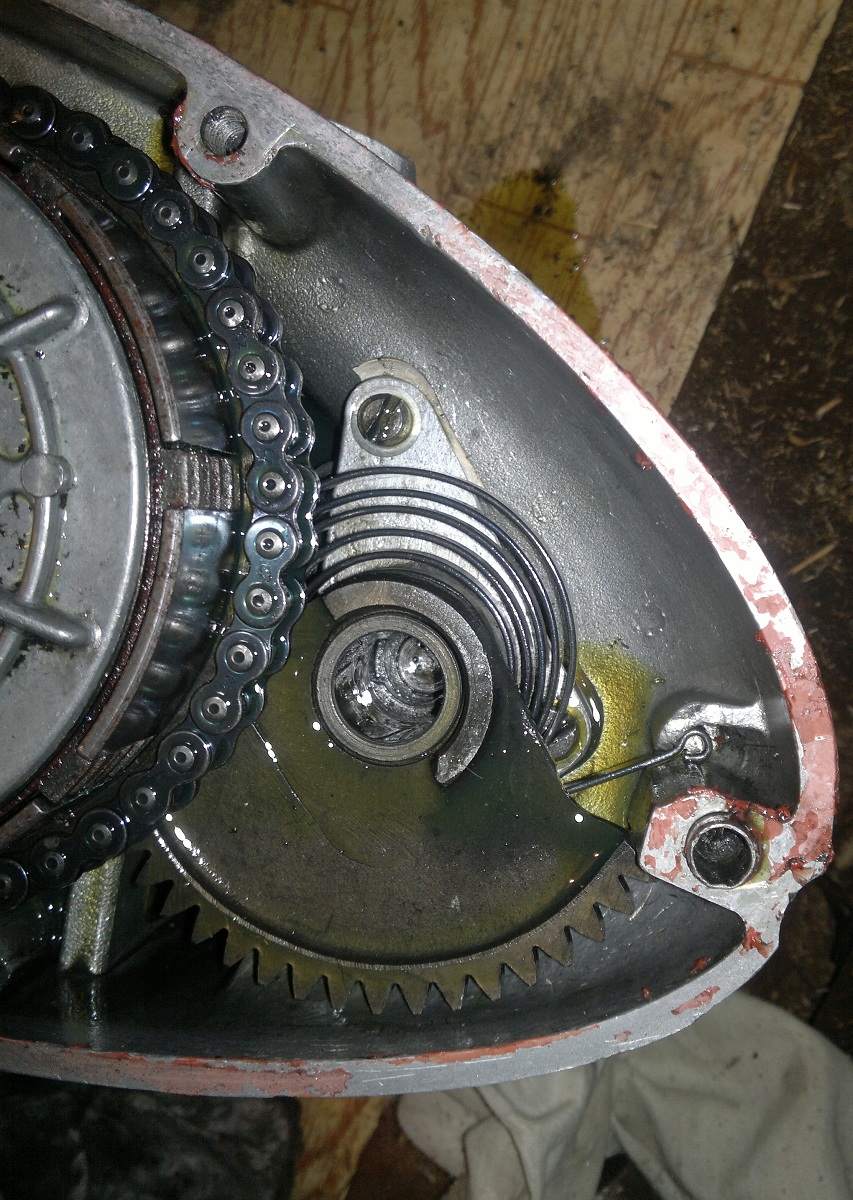 Состояние по виду и по всему остальному устраивает. Главное отличие от других Явовских моторов это механизм полумесяца на треугольнике, который привинчивается к картеру на три болта. Видно на последней фотографии.