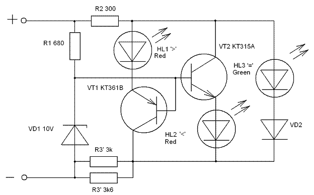 VD1 на совё усмотрение посли етого порога зжотса зелёная (в данной схеме 10вольт)