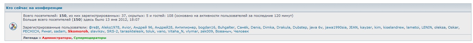 Рекорд побито!kiselandrew писав:Больше всего посетителей (15) здесь было 16 фев 2011, 21:49