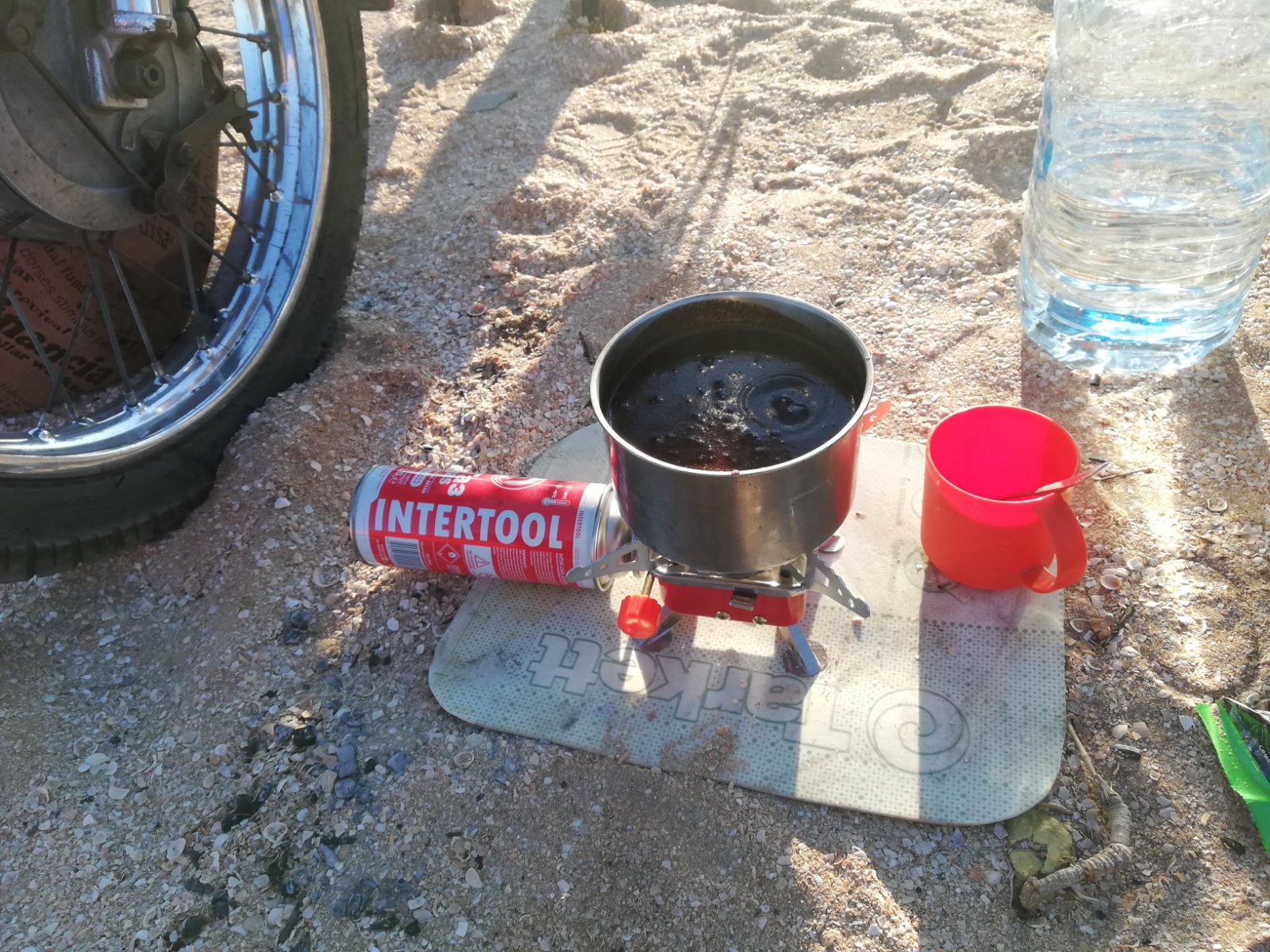 Я люблю ездить по ЮБК, а там, как известно, очень туго с дровами. Поэтому, если даже еду на машине, а не на мото, то обязательно беру керосиновый ПРИМУС (у меня их аж 3 шт разных по размеру), можно и мини газовую печечку, но не всегда есть где заправить или обменять баллончики.Также не люблю освещать место стоянки карманными фонариками, поэтому с собой небольшой переносной аккумулятор от безперебойника. Минимальный набор снастей для рыбалки еще беру и бинокль.