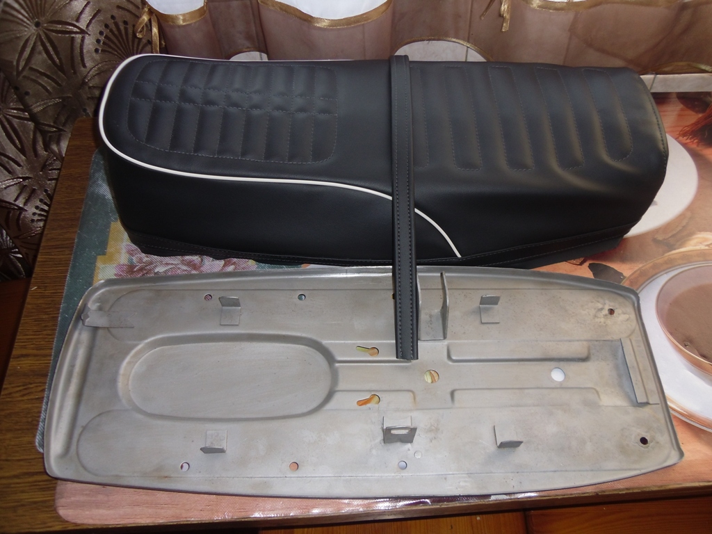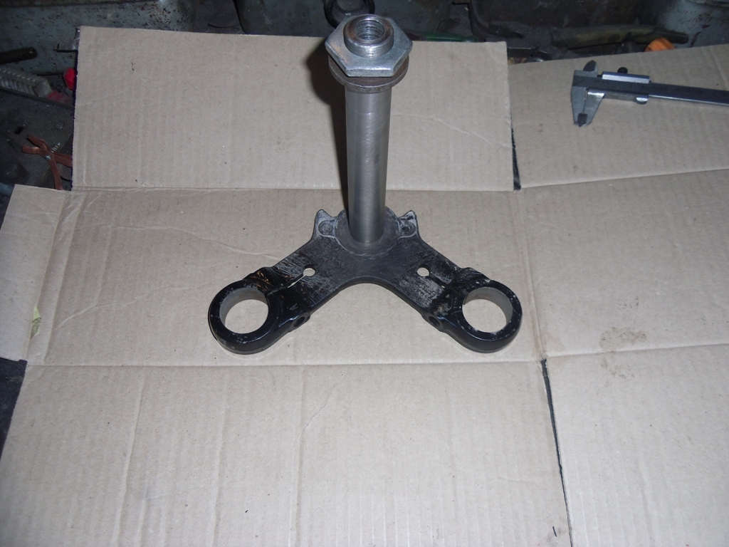 Процес повільно, але рухається! Були по фарбовані майже всі чорні деталі. Рульову колонку вирішив встановити на конічні підшипники. Встановив натяжник моторного цепа. В задині дуга вварив замість штирів шпильки з різьбой. Прикупив новий чохол на сидіння і підготував основу до фарбування.