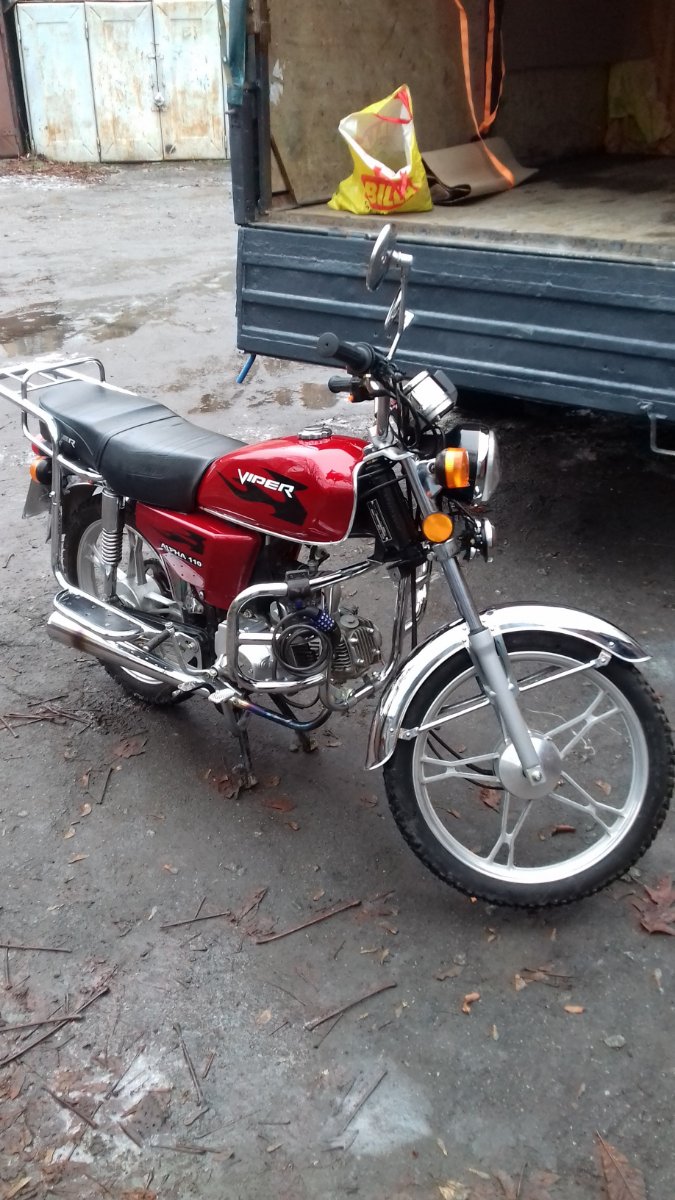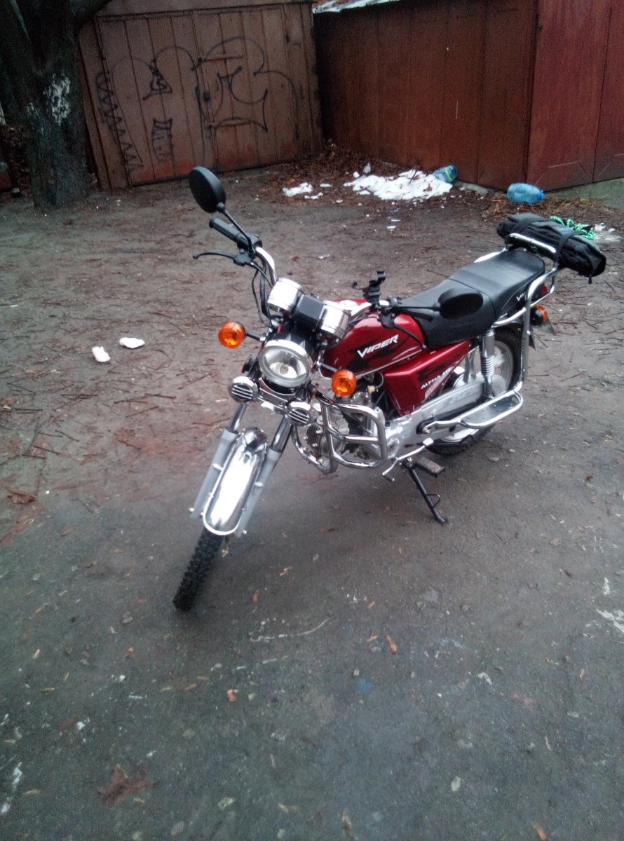 В общем , дело было так , накатавшись на Яве , не имея желания вкладывать много денег на её ремонты , пришло понимание , что нужно двигаться дальше , Яву продал , было принято , копить на японский мотоцикл , пусть даже долго , но копить , но проведённые два сезона без двух колёс , оказались мучительными , но от мечты не отказался , но на днях , попадается шикарный вариант , как по мне , за смешные деньги , Вайпер Альфа 110 куб. 2020 год выпуска , пробег 6100 т.км. долго не раздумывая , было принято решение брать , как временную технику , до осуществления мечты , после покупки , понял что не временно , а останется вторым номером. И так , до покупки , мнение о этой технике было не очень , но покатавшись сегодня пол дня , влюбился , двигатель тяговитый шо у трактора